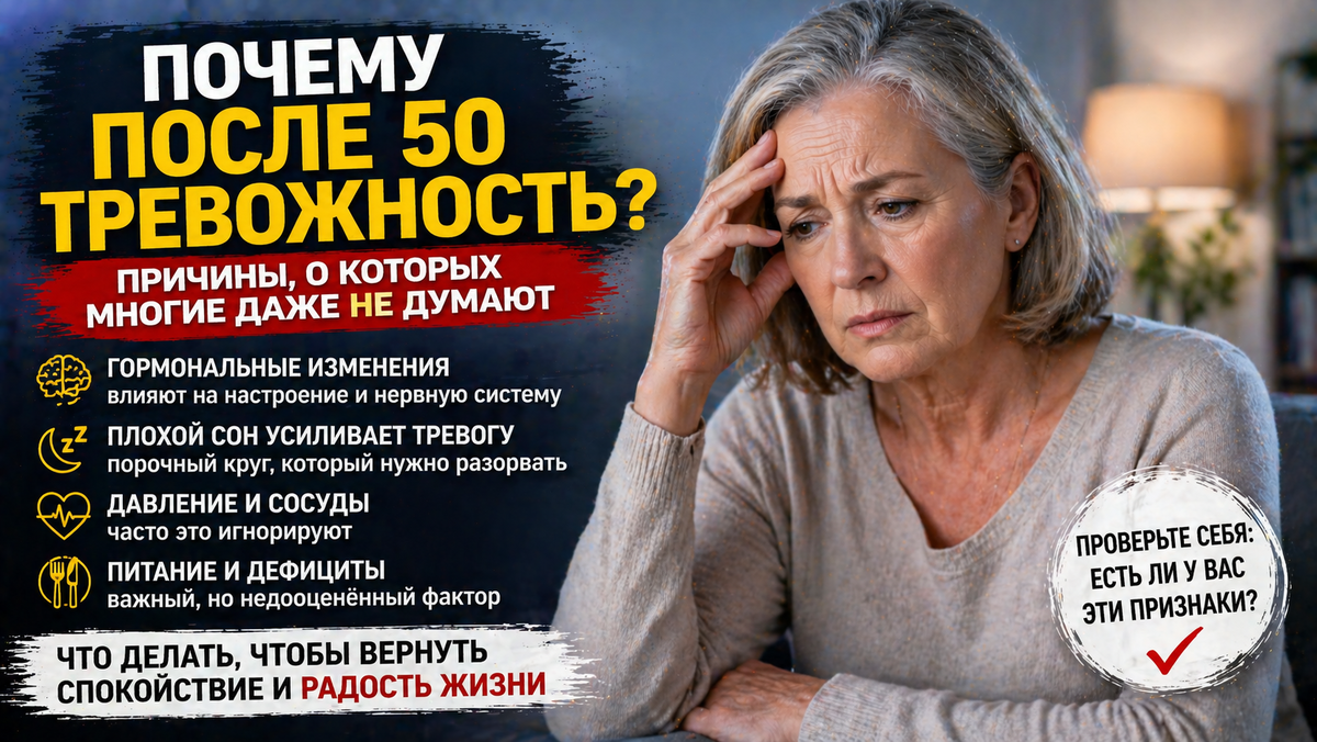 Тревожность — это не просто черта характера, а сложная реакция организма на изменения, происходящие с возрастом. После 50 лет в теле происходят значительные преобразования: