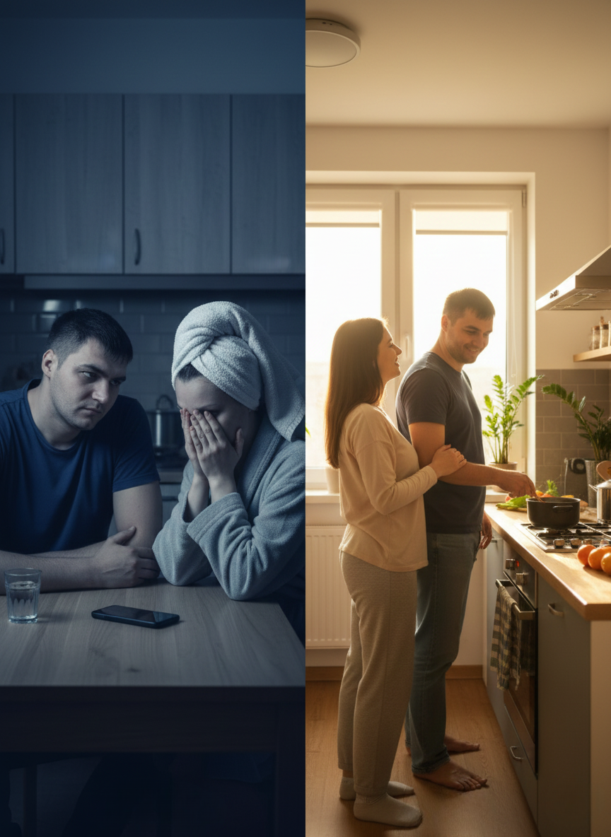 На кухне, погружённый в мысли и с телефоном в руках, мужчина спрашивает свою партнершу: «Ты бы сказала правду, если бы я не узнал?» Эти слова ставят под сомнение то, что раньше казалось незыблемым. Возникает замешательство: она задаёт встречный вопрос, который озадачивает ещё больше. Прошедшие четыре месяца переписки с Максимом оборачиваются неожиданным ударом.