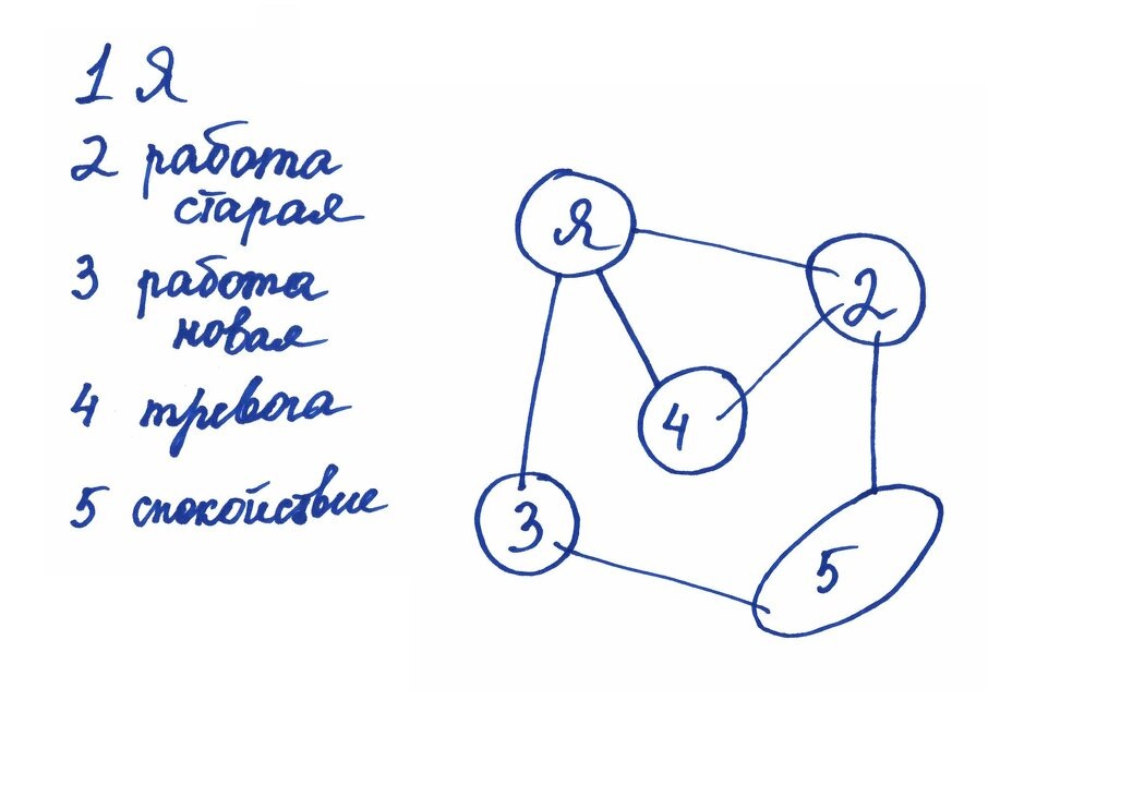 Записывая свои мысли, клиентка составила список ключевых элементов: старая работа, новая работа, тревога и спокойствие. В процессе визуализации она поняла, что хороший контакт у неё состоялся только с тревогой, а вот к другим элементам она испытывала меньше уважения. На этом этапе произошел важный переход: клиентка осознала, что может целиком сосредоточиться на стремлении к спокойствию, вне зависимости от внешних обстоятельств.